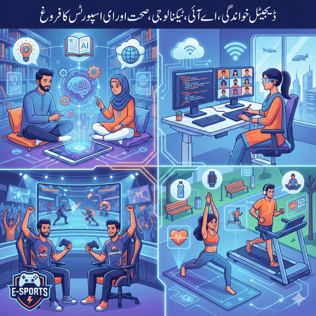 Critical thinking, vocational skills, and leadership development.6. Digital Literacy, TEC, AI, Health & E-Sports (ڈیجیٹل خواندگی، اے آئی، ٹیکنالوجی، صحت اور ای اسپورٹس کا فروغ)